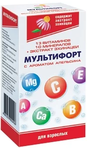 Dieser Komplex der belarussischen Produktion zielt darauf ab, die Effizienz zu steigern, die Vitalität zu erhalten und die Stimmung zu verbessern.Es enthält Hagebuttenextrakt, 13 verschiedene Vitamine, etwa 10 Mineralstoffe. Es wird empfohlen, es bei Bedarf einzunehmen, um den Körper nach langer Krankheit wiederherzustellen. Darüber hinaus schützt Multifort perfekt vor Erkältungen und verbessert die Immunität. Ein charakteristisches Merkmal ist das Vorhandensein von Echinacea in der Zusammensetzung des Arzneimittels. Es reicht aus, eine Tablette einzunehmen, um die tägliche Einnahme auszugleichen. Multifort gibt es in verschiedenen Ausführungen, getrennt für Kinder und Erwachsene. Der Durchschnittspreis beträgt 169 Rubel.