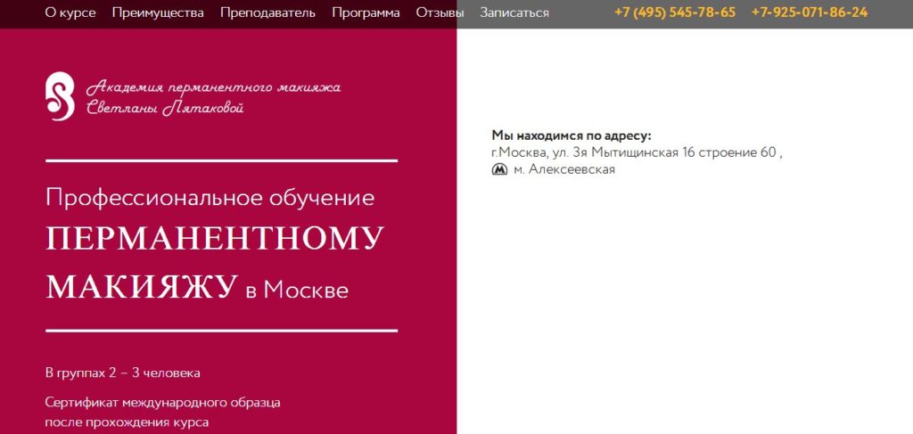 Der Kurs „Permanent Makeup Master“ beinhaltet: 37 Lektionen, 100 Unterrichtsstunden, 10 Prozeduren, Dauer 2-3 Monate. Die Studienform ist wählbar: online, offline mit einem Lehrer.