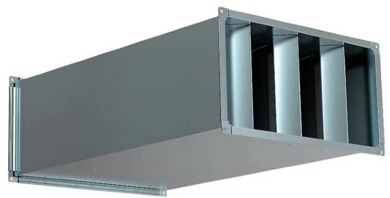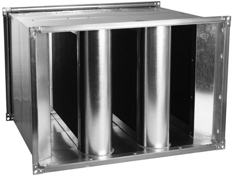 Das Produkt wird verwendet, um dynamisches Rauschen in rechteckigen Kanälen zu reduzieren. Kann unabhängig von der Richtung der Luftbewegung montiert werden. Um die maximale Geräuschminderungswirkung zu erzielen, wird empfohlen, vor dem Schalldämpfer einen freien geraden Abschnitt mit einer Länge von mindestens einem Meter vorzusehen. Der Körper besteht aus verzinktem Stahl. Im Inneren sind schallabsorbierende Platten auf Mineralfaserbasis verbaut. Die empfohlenen Kosten für Einzelhandelsketten betragen 21.540 Rubel.