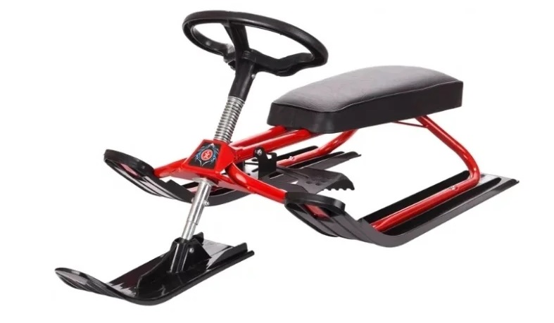 Jetzt müssen wir uns um die Ski kümmern. Sie müssen stark und flexibel sein. Dazu müssen Sie versuchen, sie zu biegen. Wenn alles gut geht, halten sie beim Abstieg der notwendigen Belastung stand und bleiben intakt. Zu berücksichtigen ist auch, dass der Kunststoff kältebeständig sein muss. Beim Passieren von Unregelmäßigkeiten bei frostigem Wetter wird es also nicht unbrauchbar. Nun, für eine bessere Wendigkeit lohnt es sich, Modelle mit drei Skiern zu kaufen. Dadurch wird es möglich, Hindernissen auszuweichen. Ein wesentliches Plus bei der Auswahl ist das Vorhandensein eines Stoßdämpfers. Normalerweise befinden sie sich auf der vorderen Kufe. Mit seiner Hilfe wird die Bewegung erleichtert, die Vibration nimmt ab und die Schläge sind nicht so scharf.