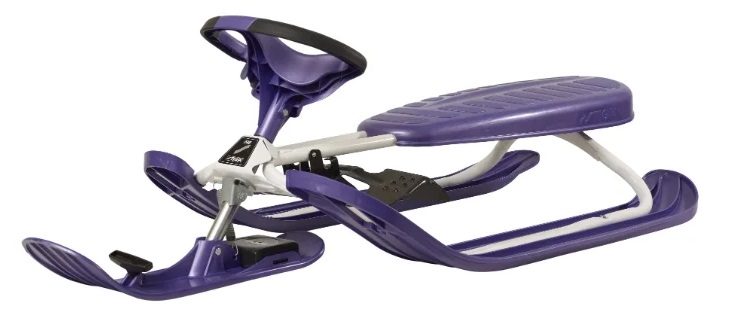 Der Rahmen des Stiga Snowracer Color Pro besteht aus strapazierfähigem Stahl. Die Steuerung erfolgt über ein Autolenkrad, das aus rutschfestem Material besteht. Zum Abbremsen gibt es eine Fußbremse.Es ist mit Lackfarbe überzogen und hat eine geriffelte Oberfläche, die ein Abrutschen des Fußes während des Betriebs verhindert. Der Hersteller hat auch ein spezielles System installiert, mit dessen Hilfe der Schneescooter im Falle eines Sturzes des Fahrers anhält.