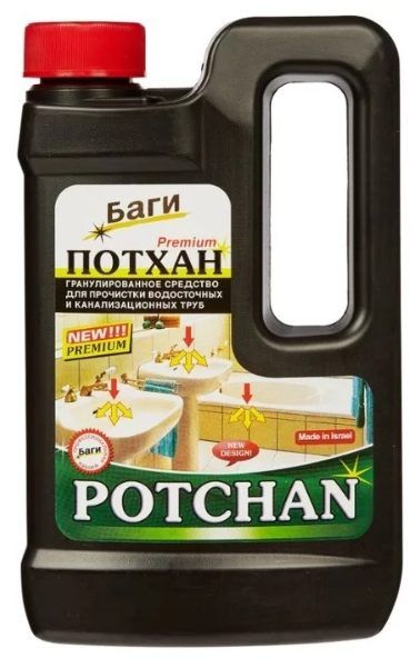 Bagi Clog Granules Pothan ist ein Pfeifenreiniger auf Basis von konzentriertem Granulat. Dieses Produkt steht auf der Liste der aktiven chemischen Lösungsmittel, die zur Behandlung schwieriger Verstopfungen verwendet werden.