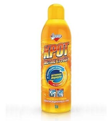 Eine der beliebtesten Chemikalien auf dem russischen Markt ist Krot. Es bewältigt Verstopfungen verschiedener Art, wie Fett, Seife, Papier, Speisereste und Haare.