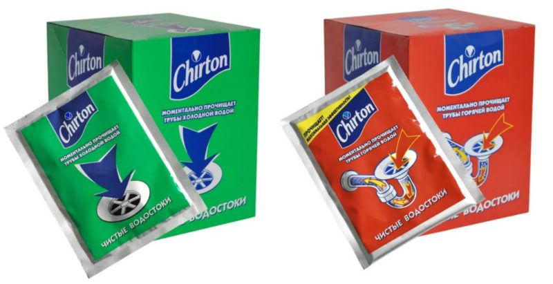 Mittel zum Reinigen von Rohren Chirton "Saubere Abflüsse" können 1 Mal pro Monat zur Vorbeugung verwendet werden. Wenn das Abflussloch einen großen Durchmesser hat, können Sie eine doppelte Dosis verwenden.