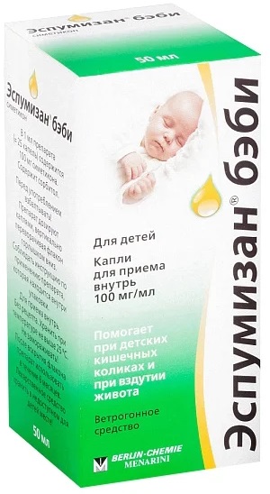 Freisetzungsform - Emulsion und in Form von Tropfen. Die Flasche mit Tropfen hat einen praktischen Messverschluss. Die Emulsion wird mit einem Messlöffel geliefert. Espumizan wird ab den ersten Lebenstagen eines Kindes verschrieben.