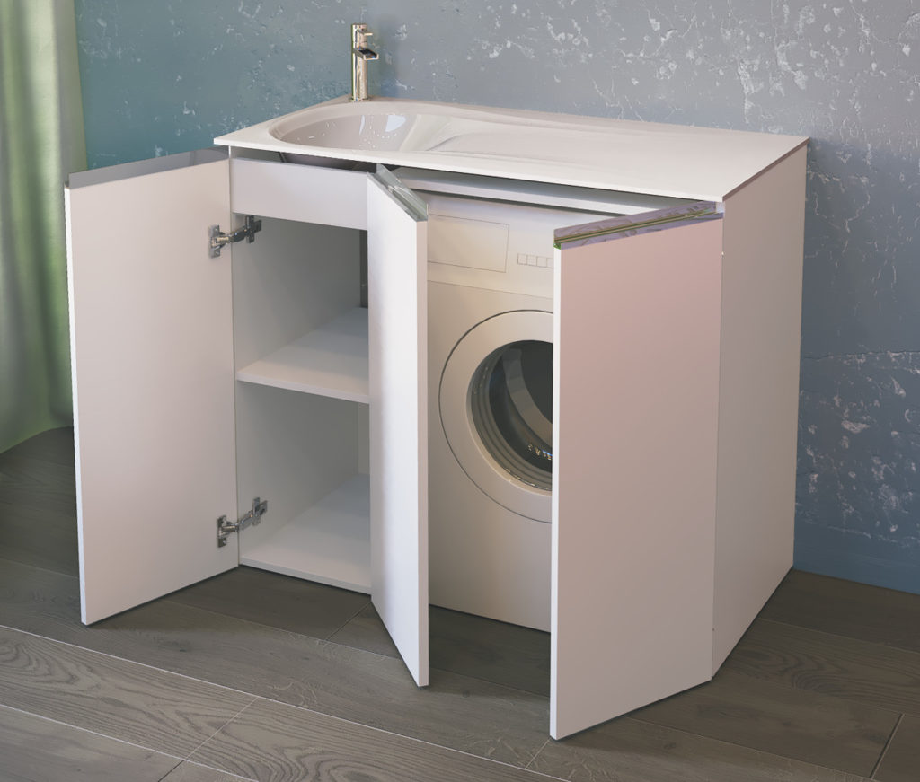 Der Hauptunterschied sind die Abmessungen. So variiert die Höhe von Standard-, Stand- oder Einbaugeräten von 80 bis 86 cm und die Breite beträgt 60 cm, es gibt auch schmale Modelle, die Platz sparen, aber ihre Abmessungen werden nur aufgrund der Breite reduziert und die Höhe unterscheidet sich nicht von der üblichen, typischen Full-Size-Technik. Solche Geräte können nicht unter dem Waschbecken installiert werden, da sie sich sonst zu hoch befinden und die Breite der Maschine über das Waschbecken hinausgeht, was den Komfort beeinträchtigt. Ein hoch montiertes Waschbecken, an das man sich nicht herannähen kann, wird wohl niemanden erfreuen, selbst wenn man das Gerät darunter montieren könnte. Es ist einfacher, eine solche zweifelhafte Ergonomie zu vermeiden und Geräte zu kaufen, die speziell für eine solche Installation entwickelt wurden.