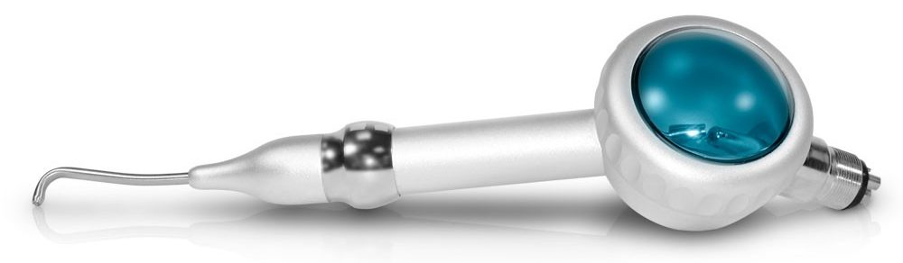 Die Düse wird zum Sandstrahlen der Zahnoberfläche verwendet, um Plaque, Zahnstein und andere Verunreinigungen zu entfernen. Das Funktionsprinzip besteht darin, der behandelten Oberfläche ein Gemisch aus Luft, Wasser und einem speziellen Pulver unter Druck zuzuführen. Als Ergebnis des Mischens der Zusammensetzung wird ein Spray gebildet, das sogar alte Verunreinigungen entfernt, während der Patient keine Beschwerden verspürt.