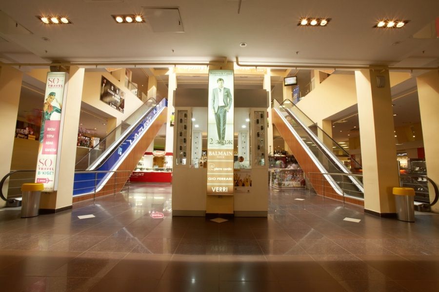 Ein moderner Einkaufskomplex, der vier Etagen umfasst, seine Fläche beträgt 41.000 qm. Hier ist alles gut durchdacht, Rolltreppen, Fahrsteige und Aufzüge funktionieren bequem. Für Käufer, die mit einem Privatfahrzeug anreisen, gibt es eine Tiefgarage auf zwei Ebenen. Es ist immer angenehm und komfortabel, sich in diesem Einkaufs- und Unterhaltungszentrum aufzuhalten.