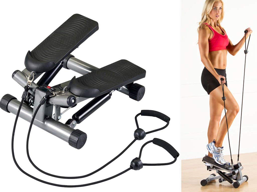 Dieser balancierende Mini-Stepper ist original.Es verfügt über ein integriertes Display, mit dem Sie die verbrannten Kalorien zählen können. Das komplette Set sieht das Vorhandensein eines rutschfesten Teppichs vor, auf den das Gerät gestellt werden kann.