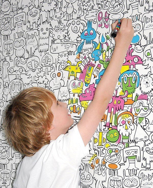 Tapetenfärbung ist eine ideale Version von Modellen für Kinderzimmer. Auf den Wandteppichen sind verschiedene Zeichnungen angebracht, die das Kind gerne malen wird, und die Eltern müssen sich keine Sorgen um beschädigte Wände machen. Wandteppiche sind leicht zu reinigen und können durch Abwischen mit einem feuchten Tuch jederzeit wieder in ihr ursprüngliches Aussehen zurückversetzt werden.