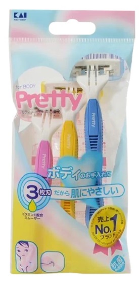 Eine solche Einwegmaschine des japanischen Herstellers „KAI“ hat drei titanbeschichtete Klingen. Ein mit Vitamin E imprägnierter Feuchtigkeitsstreifen sorgt für ein gutes Gleiten über den Körper. Auch Teile der Maschine, die mit der Haut in Kontakt kommen, sind mit Harz imprägniert. Es hat eine antibakterielle Wirkung. Dank dieser Eigenschaften kommt es zu keiner Infektion oder Reizung der Epidermis.