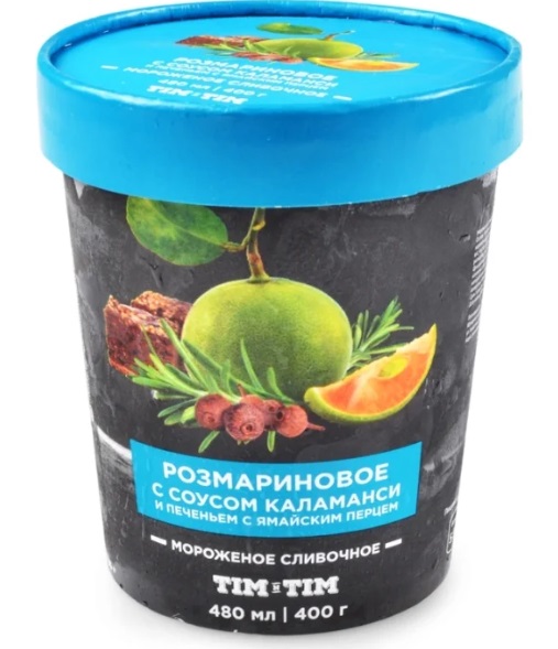 Wenn Sie etwas Neues und Ungewöhnliches ausprobieren möchten oder einfach nur ein Kenner des Exotischen sind, dann wird Ihnen dieses Produkt von Tim&Tim definitiv gefallen. Beim ersten Öffnen der Verpackung werden Sie vom herben Aroma von Rosmarin und der zarten Blautönung des Eises angenehm überrascht. Denken Sie nicht, dass ein solcher Farbton durch die Zugabe von künstlichen Farbstoffen erhalten wurde. Nein, das ganze Geheimnis liegt in Spirulina. Diese Alge ist sehr beliebt bei denen, die ihre Ernährung überwachen. Und nachdem Sie das Eis probiert haben, werden Sie den unglaublich hellen Zitrusgeschmack spüren, der der wilden Calamansi-Orange verleiht. Und um den Geschmack noch origineller und einprägsamer zu machen, fügte der Hersteller Kekse mit dem Geschmack von jamaikanischem Pfeffer hinzu.
