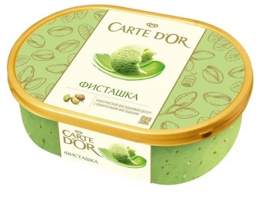 „Carte D'or-Pistazien“ werden für ihre zarte Struktur in Erinnerung bleiben, nach der ein leicht cremiger Nachgeschmack und ein angenehmes nussiges Aroma vorhanden sind. Auch im Dessert gibt es Pistazienstücke. "Carte D'or Pistazien" wird in Plastikform verkauft, das Gewicht des Produkts beträgt 475 Gramm. 100 Gramm des Produkts enthalten 230 kcal. Der Fettgehalt dieses Desserts beträgt 9,3 %.