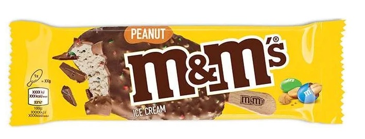 Wer liebt Schokoladen-M&Ms nicht? Und jetzt können Sie Eis mit dem gleichen Geschmack probieren. Bei diesem Produkt handelt es sich um ein mit Schokoladenglasur mit Nussbröseln überzogenes Produkt, das am Stiel hergestellt wird und die für uns übliche Verpackung hat, wie unser Lieblings-Schoko-Dragee. Das Eis selbst sieht sehr appetitlich aus, in Schokoladenglasur sieht man nicht nur Erdnüsse, sondern auch Stücke von M&M's selbst. Wenn Sie das sehen, möchten Sie wissen, was Sie unter dieser süßen Glasur erwartet. Und dort finden Sie einen zarten Milchgenuss, der nicht zu süß ist. Aber das ist noch nicht alles, es wird auch Nussstücke geben. Wenn Sie ein solches Dessert einmal probiert haben, wird es zu einem Ihrer Favoriten.