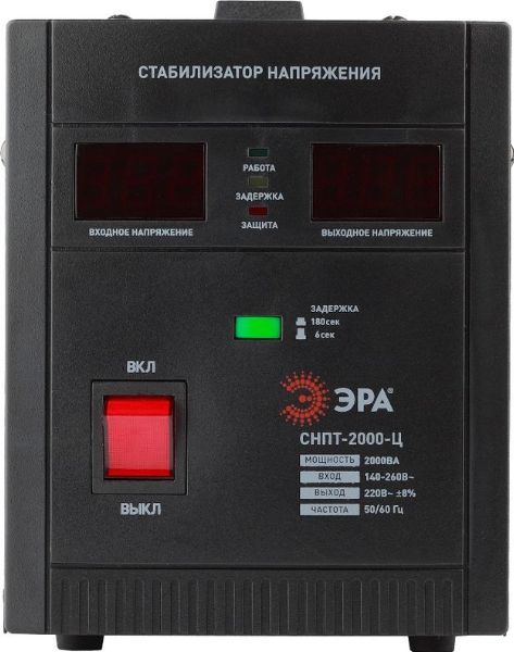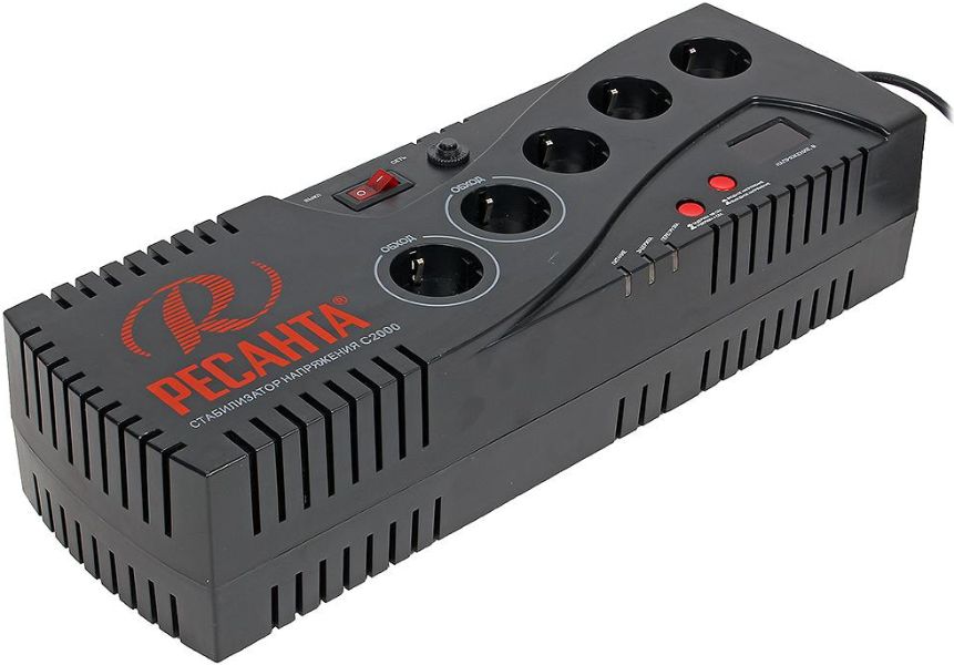 Das Gerät soll die Eingangsspannung normalisieren und Haushaltsgeräte mit einer Gesamtleistung von bis zu 2000 Watt vor Überspannungen schützen. Arbeitet mit einer Spannung von 220 V, die Genauigkeit beträgt ca. 8 %. Das Gerät ist mit Netzrauschfiltern ausgestattet, die Änderungen der Sinusfrequenz verhindern, sowie mit einem Mikroprozessor-Steuerchip und einem Bildschirm.