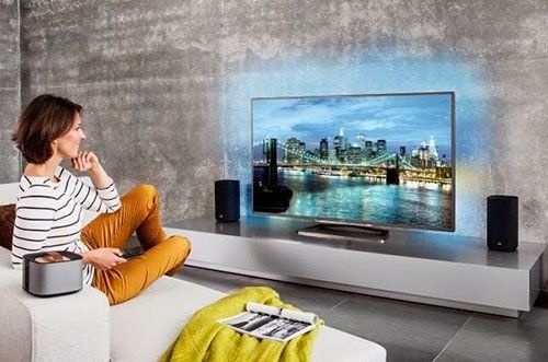 Der Fernseher unterstützt die drahtlose Internetverbindung sowie die Sprachsteuerung.