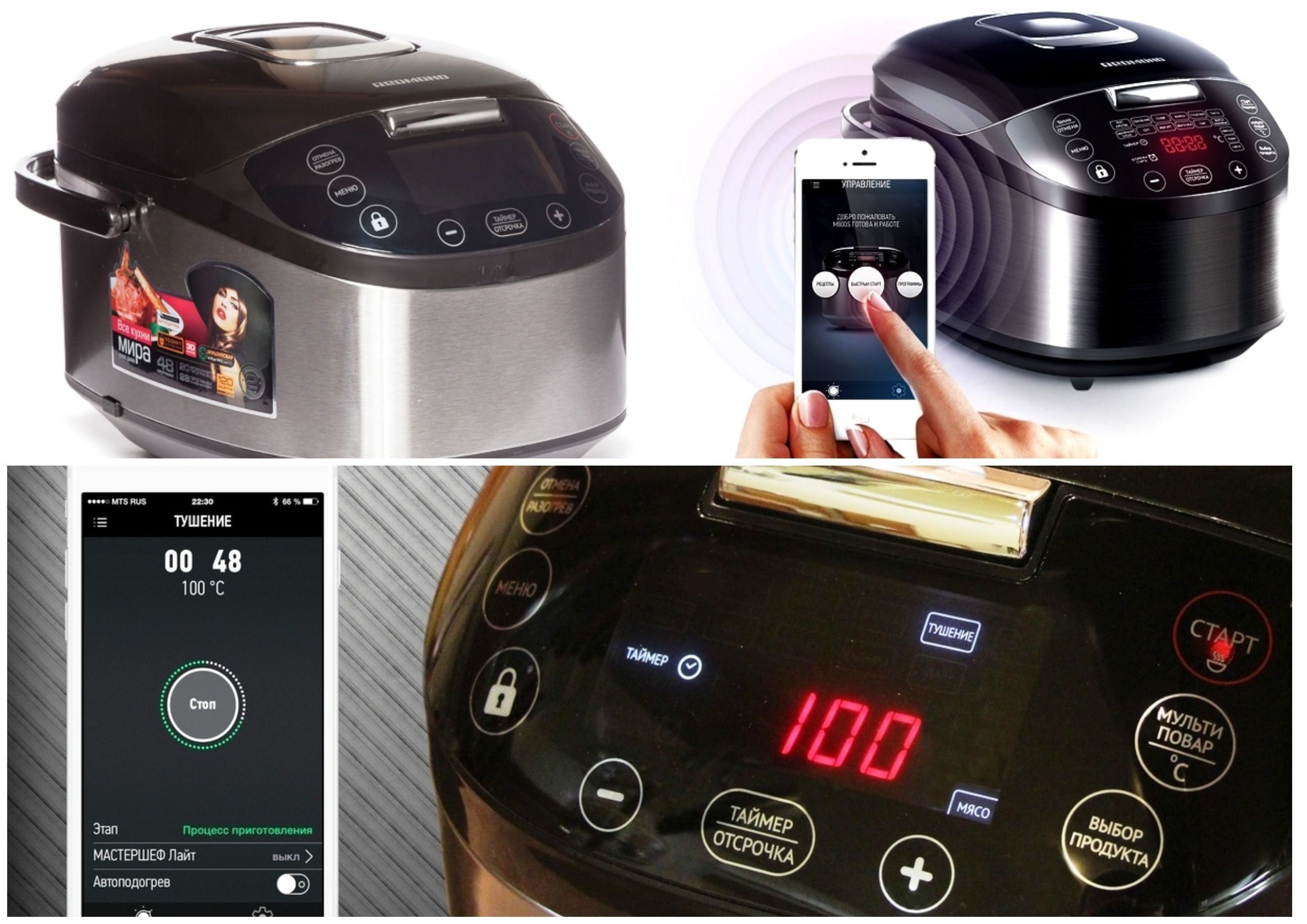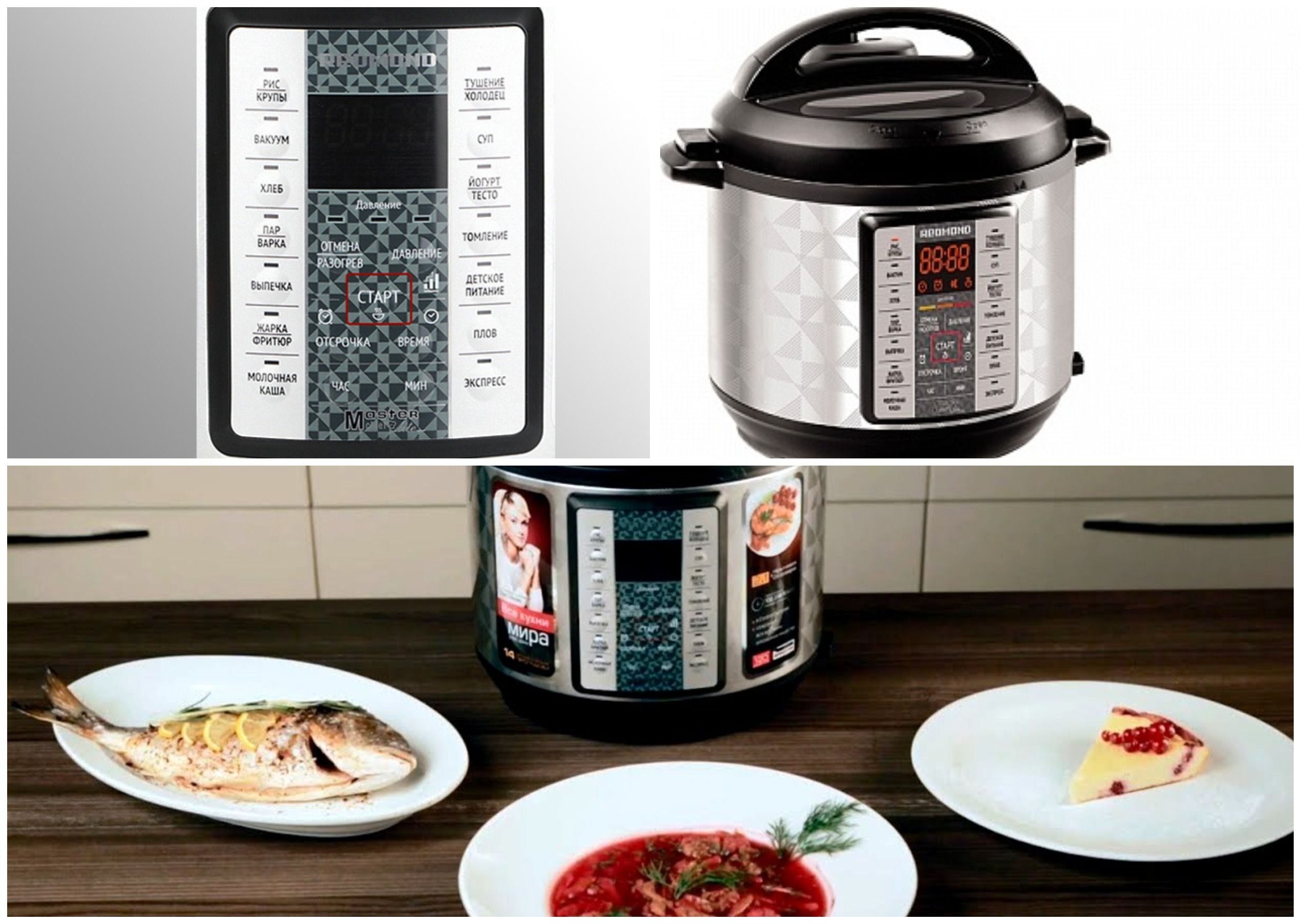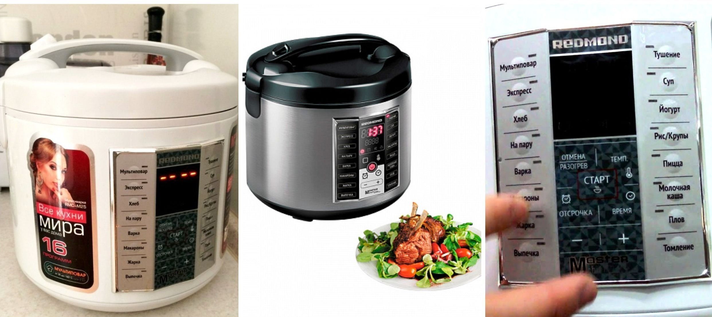 Η καλύτερη μάρκα στη μεσαία κατηγορία τιμών είναι η REDMOND και το μοντέλο της M800S, μια έξυπνη πολυκουζίνα, πολυλειτουργική, ελεγχόμενη από φορητή συσκευή. Φυσικά, είναι συνολικά, θα απαιτήσει περισσότερο χώρο, αλλά οι δυνατότητές του αντισταθμίζουν αυτό το ασήμαντο.Η συσκευή διαθέτει 20 αυτόματα προγράμματα, ακόμη περισσότερα με χειροκίνητες ρυθμίσεις (28 προγράμματα).