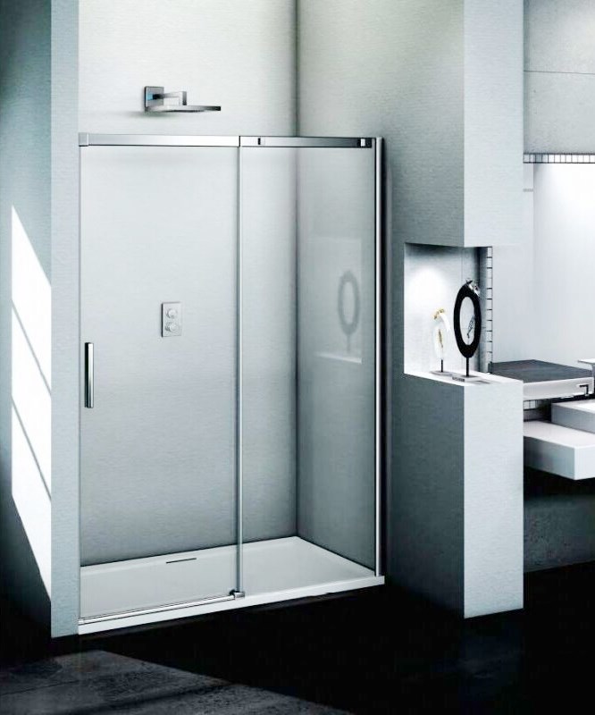 Η βαθμολογία μας ηγείται ενός ποιοτικού προϊόντος από γνωστό εγχώριο κατασκευαστή. Πόρτες ματ και φιμέ, πλάτους 800 mm. Ως πρώτη ύλη χρησιμοποιείται σκληρυμένο γυαλί υψηλής αντοχής πάχους 0,5 εκ. Το μοντέλο αναγνωρίζεται ως απολύτως ασφαλές στη λειτουργία. Ένα χαρακτηριστικό σχεδιασμού είναι η δυνατότητα ανοίγματος των θυρών όχι μόνο προς τα έξω, αλλά και προς τα μέσα, γεγονός που καθιστά τη χρήση τους καθολική. Δεν υπάρχουν περιορισμοί στις εργασίες εγκατάστασης από τη μάρκα· ένα άτομο μπορεί να αντεπεξέλθει στις καθορισμένες εργασίες. Το επιχρωμιωμένο προφίλ αλουμινίου, εξοπλισμένο με ανθεκτικό μηχανισμό, είναι υπεύθυνο για τον δείκτη αξιοπιστίας του προϊόντος. Εάν είναι απαραίτητο, το πλάτος μπορεί να ρυθμιστεί χειροκίνητα +/- 2 cm.