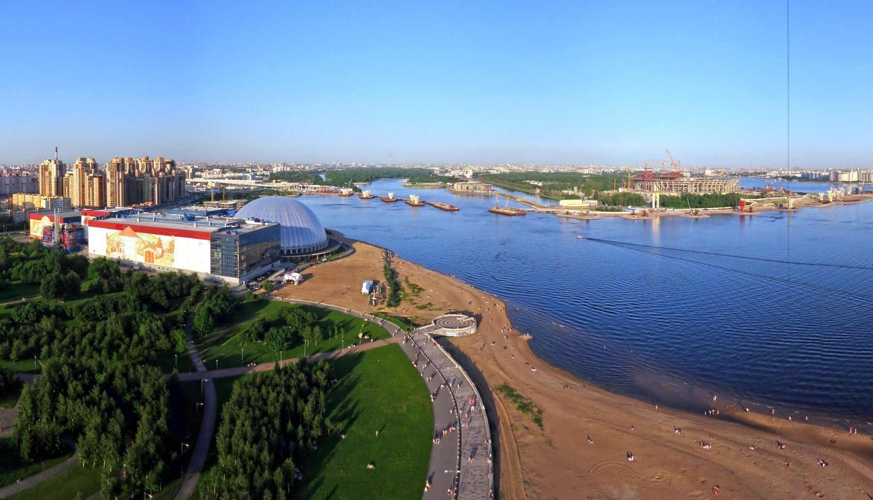 The park is located right on the shore of the bay, which allows you to run along the shady alleys and breathe in the fresh sea air. The park is very well maintained and tidy. Hundreds of Petersburgers flock here every day to admire the opening view of the newly built Zenit Arena stadium, which resembles a spaceship with evening illumination, the Lakhta Center and the Western High-Speed Diameter.