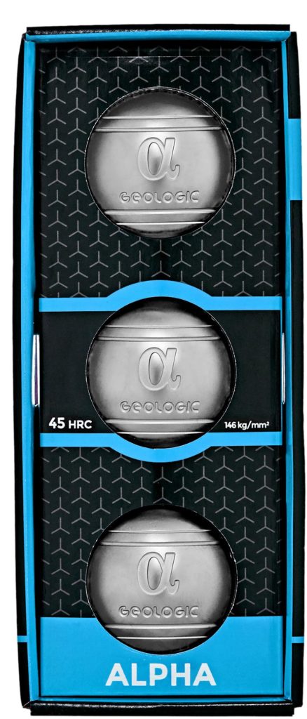 ALPHA balls from GEOLOGIC are suitable for athletes starting their journey in petanque. They are presented in a smooth and corrugated version with a diameter of 72 mm and a weight of 690 g. They are solid, the density index is 45 HRC (146 kg / mm2). Due to this, it is resistant to impacts and rebounds more strongly in a collision. Each projectile is engraved with the brand name. The balls are made of carbon steel, which requires regular maintenance - wiping with oiled rags. The set is packed in a cardboard box.