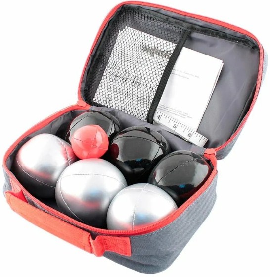 All sets are packaged in nylon pouch with zip and handle for easy portability. Throwing balls are made of steel, however, the manufacturer does not indicate which one. Their diameter is 70 mm, the weight of each is 750 g. There are several options for coloring the balls - steel, gold, rainbow, black. In some sets, half of the inventory has one color, half the other. In addition, they differ in pattern and number of notches for convenience and ease of determining belonging to a particular player. In addition to the main ones, the kit includes a cochonnet, which is made of wood, a distance meter and instructions. Suitable for children over 10 years old.