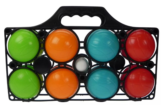 This Chinese manufacturer offers a set of 8 petanque balls. The set is designed for children ages 3 and up to play. All projectiles are made of plastic. The diameter of the large ones is 7 cm, the kochonnet is 3.5 cm. It is filled with water for greater stability. Large ones are painted in 4 colors - yellow, green, blue and red. They all have the same notch pattern. The set is packed in a kind of plastic case-container.