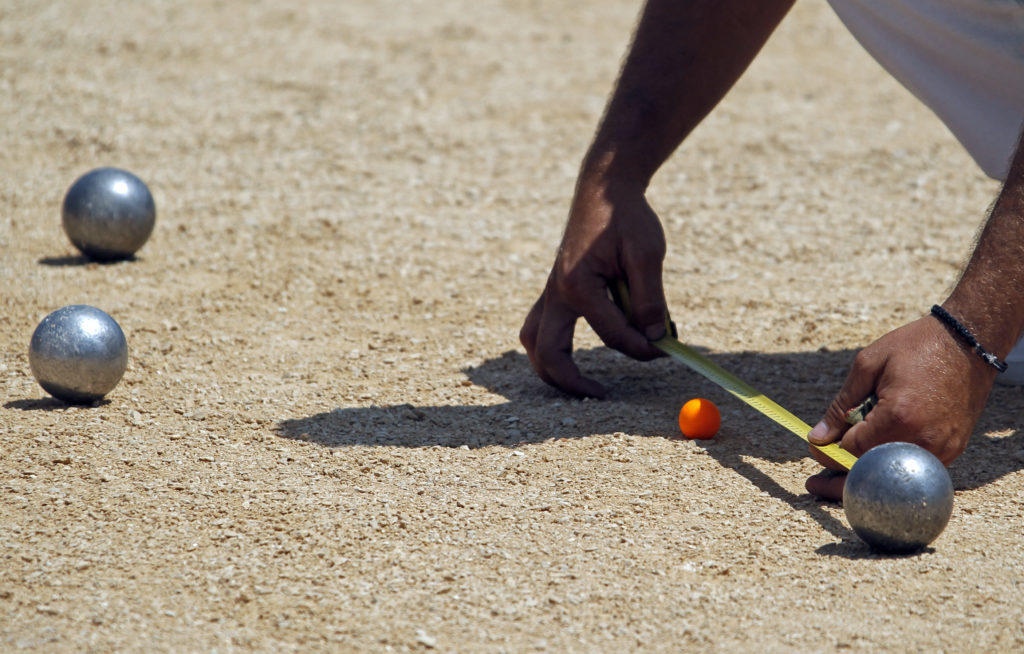 To play petanque, you need a set of metal balls and a cochonette (a smaller wooden ball that later plays the role of a target). 2 teams compete, each of them can have from 1 to 3 players. The rules stipulate that the total number of shells should not exceed 12.Therefore, when there are 3 people in the team, there are only 2 for each of them. If the team consists of 1 or 2 participants, then they play with three spheres. The team that will make the first throw is chosen by lot. It is she who outlines a small circle on the site (with a diameter of 30-35 cm), from which throws will be made in the future. The first player stands in the outlined circle and, without leaving it and without taking off his legs, throws the kochonette at a distance of 6-10 meters from himself. Then the next player of the same team throws the first ball so that it lands (stops) as close as possible near the target (jacket). After that, a member of the second team does the same actions in order to throw his projectile closer to the jack than the player of the previous team.