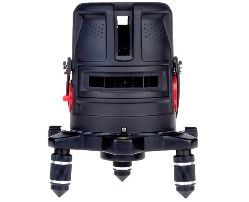 Combined level with thoughtful functionality at a relatively inexpensive price. Suitable for various types of work, including outdoors in sunny weather. Projects a clear horizontal plane in a circle plus four vertical planes, as well as a laser plummet. Operates on four AA batteries at a temperature range of -10 to +40ºС. It is worth noting the almost perfect accuracy (error no more than 0.1 mm/m) with a good optical system of lines.