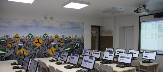 Classes are equipped with computers, it is possible to pass a trial exam for the traffic police.