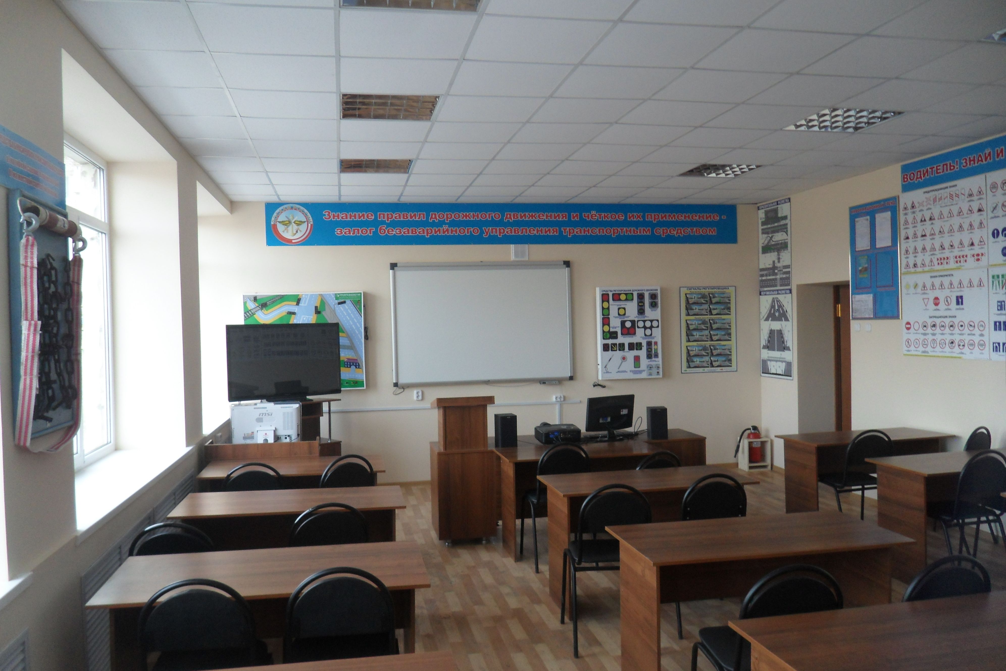 Classes for the theoretical course are equipped with computers, simulators and models of car components. Students receive knowledge of traffic rules, information about the operation and structure of the machine, skills in first aid.