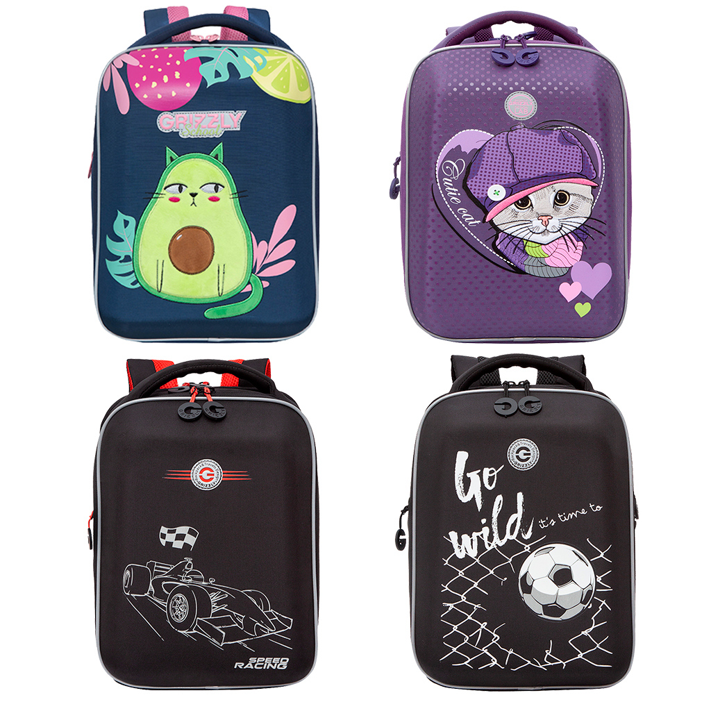 With other collections of satchels and backpacks for schoolchildren from the Grizzly brand, you can separate review.