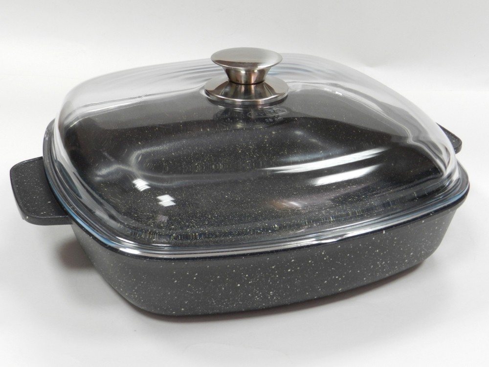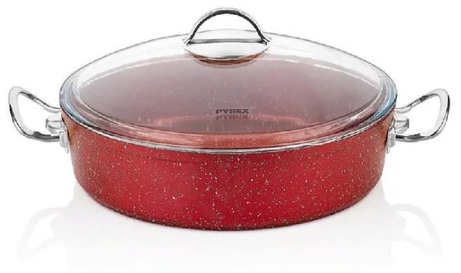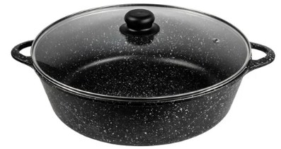Roaster with heavy-duty, granite, non-stick coating TITANIUM & GRANITE. The lid is made of glass, which will facilitate cooking - without lifting the lid, you can observe the degree of readiness of the dish.