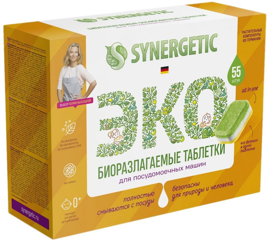 Properties: suitable for glass, steel (stainless steel) cookware, cool water, biodegradable, soluble tablet shell.