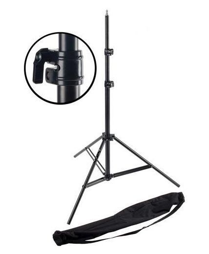 Maximum height - 2 m; minimum height - 72 cm; rack weight - 1.2 kg; load capacity up to 5 kg; fastening 1/4 inch; material is aluminium. Price - 1360 rubles. The package includes a case with a clip, which allows you to transport the rack without any problems.