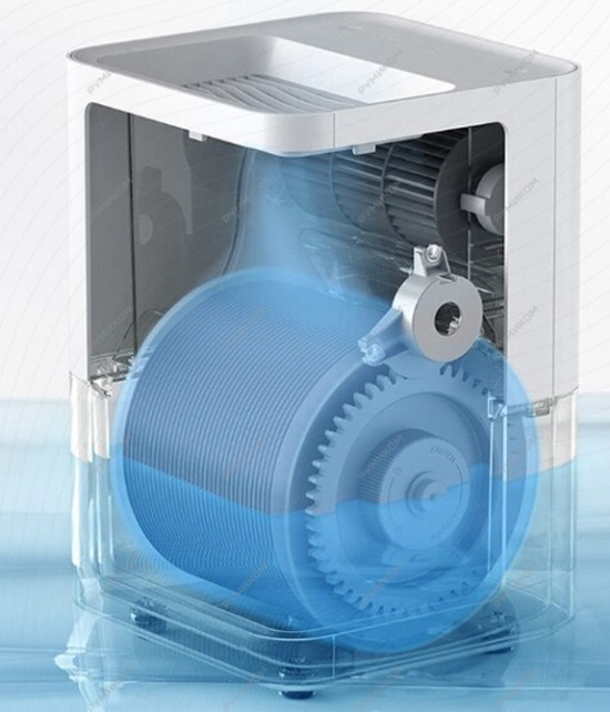 Compact model made in China with different modes of operation. Comfortable humidity conditions are maintained thanks to natural evaporation technology. The device is equipped with 36 blades for liquid circulation. A high level is achieved with a high intensity of 0.24 l/h. The double structure separates the water tank from the motor unit, ensuring safety. Water is poured through the grate, the evaporation process is automatically suspended. Management is carried out by a smartphone in the Mi Home application.