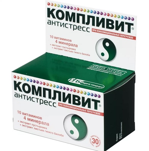 Another budget complex is Complivit Antistress. The tool is available in the form of tablets and contains a decent amount of biologically active components. Experts recommend it as an additional fortified source. There are few contraindications: lactation, pregnancy and individual intolerance. Complivit Antistress has a positive effect on the psycho-emotional state, helps to increase the stability of the nervous system. Buyers note that Complivit is perfectly perceived by the body, helps to wake up quickly in the morning, sleep well at night and does not cause discomfort from the gastrointestinal tract.
