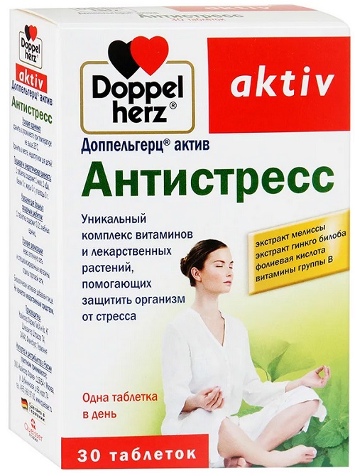 Good reviews were collected by the German complex Doppelgerz Active Antistress. It is created on the basis of medicinal plants and a combination of vitamins, which allows you to effectively resist stressful situations. In addition, the impeccable composition of the complex improves brain activity and helps to restore the body after difficult, exhausting situations. The effect is cumulative. Doppelherz Active Antistress gently affects the body, increases resistance to stressful situations, improves concentration, strengthens the immune system and becomes a real find for the nervous and cardiovascular systems. After using the complex, a person not only improves health, but also increases mental abilities, which has a positive effect on working capacity. Release form - tablets.