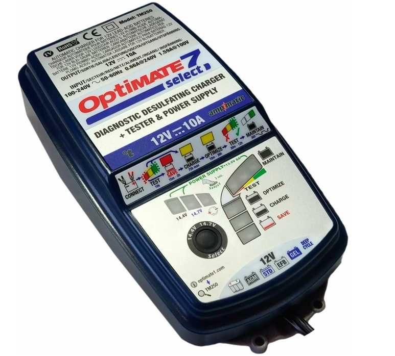 This smart charger allows you to recharge, recharge and ensure proper use of your car batteries. This device has a peak charge current of 50A and is compatible with 12-volt batteries, the capacity of which ranges from 10-600 Ah.