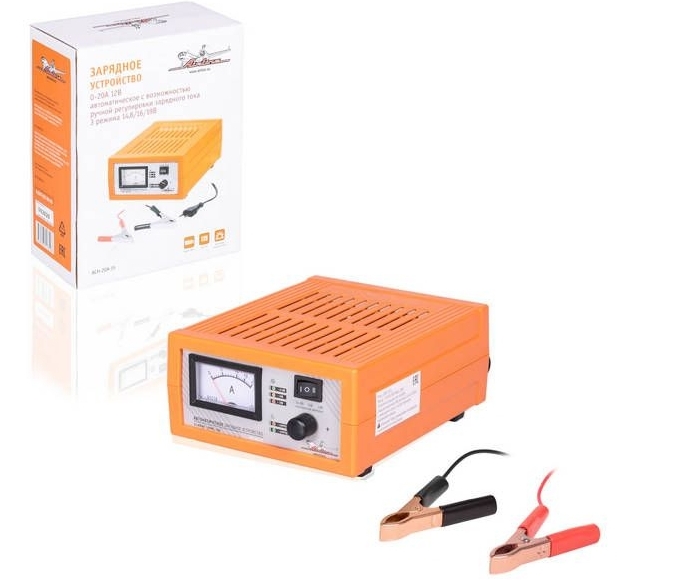 This charger is equipped with a charging current indicator. This device is suitable for recharging lead-acid batteries. The device operates in 2 charge modes: