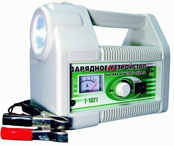 This is a pulse charger. Works in fully automatic mode. Suitable for those motorists who do not want to mess with the settings. Auto electrician T-1021 has the function of voltage and current stabilization. The value of the charging current takes on a value of up to 7.5 amperes.