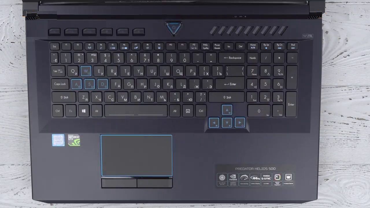 Acer Predator Helios 500 with a screen diagonal of 17.3 inches, depending on the configuration, has different types of matrices. The manufacturer offers IPS-matrices either 4K, which has a good resolution, or Full HD at high speed, but any type supports the revolutionary technology that provides fast and smooth gaming - NVIDIA G-Sync. IPS-matrices transmit a contrasting picture, bright colors and a wide viewing angle, but not very deep blacks.