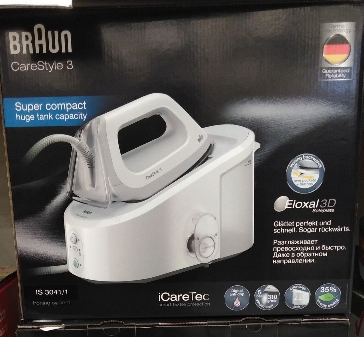 The next model is for those who want to save not only time, but also space in the room. The compact model of the Braun IS 2044 ironing system makes it easy to do without an ironing board and simply store such a smart system on a shelf in a closet.