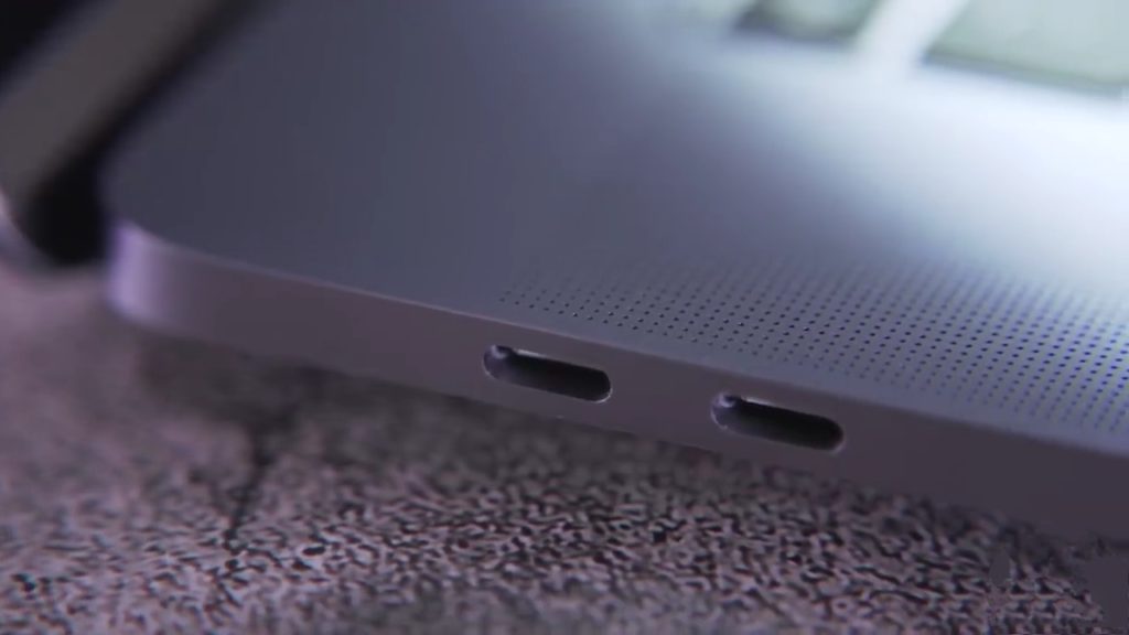 The increase in the overall dimensions of the unit in no way affected the addition of interfaces on the side faces of the device. There is the same set of four Thunderbolt 3 connectors, each of the ports can be used to establish contact with both an external video card and a charger.