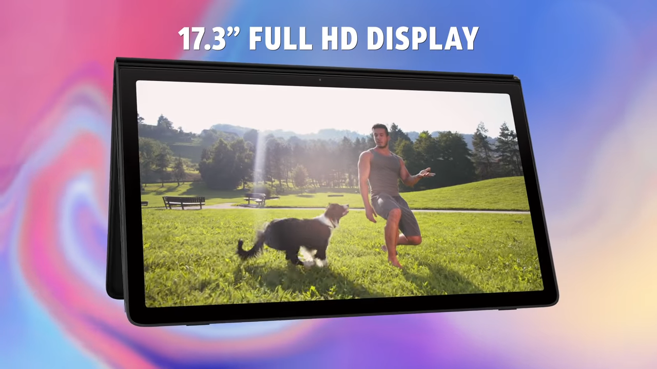 The updated model of the gadget has acquired a new shape. The front of the tablet is a large 17.3-inch screen. The matrix is surrounded by relatively narrow frames, which was not the case on the first modification.