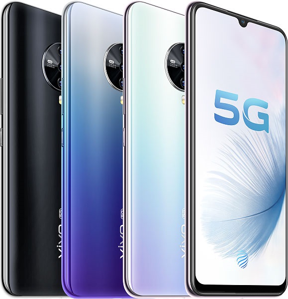 Monoblock classic smartphone is made in a simple style. There are basic installation elements and built-in cameras. A phone with narrow metallic bezels and a slim black chin. The selfie camera is located at the top of the screen in the center, the U-shaped cutout gives the model elegance and accuracy. The block of the main cameras, and there are four of them, is located on the back cover, in the center at the top. The shape is unusually round, slightly elevated relative to the plane of the body. This does not interfere with the overall look of the smartphone. For symmetry in the circle, there is not enough fifth chamber - instead of it, the manufacturer indicated the characteristics. Below the block is a two-tone LED flash, even lower is the Vivo branded logo, “lying”, from the bottom up, with a 5G technology icon.