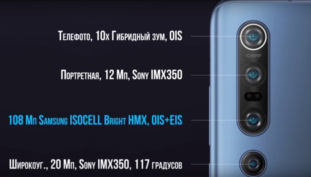 The flagship camera of 2020 - Xiaomi mi 10 Pro consists of four main sensors and two additional ones.