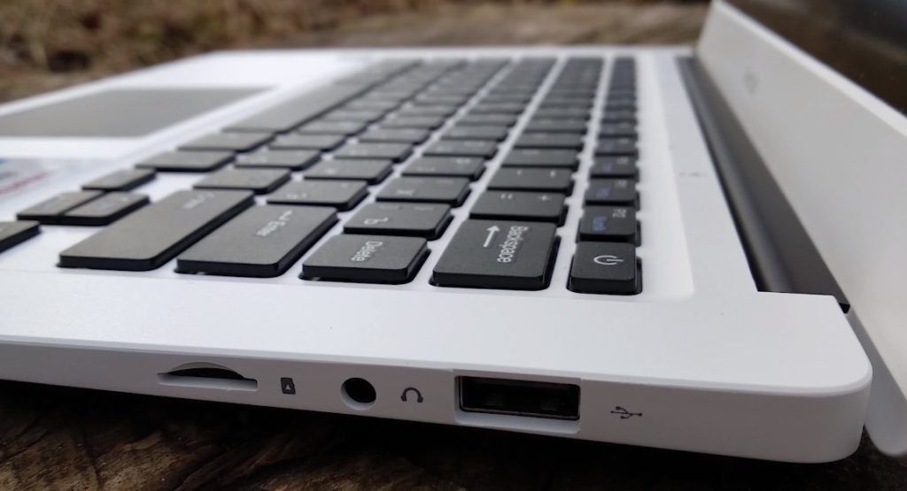 The number of ports is very comfortable. They are enough for comfortable office work, which is most important in a budget laptop. The laptop is equipped with two full-fledged USB ports 2.0 and 3.0. A mini HDMI connector is also provided for connection with peripheral devices. To connect to the wired Internet, the gadget has an RJ-45 port. On the left side there is a connector for the power adapter, and on the right side there is a headphone jack with a diameter of 3.5 mm and a slot for an SD memory card.
