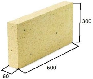 The material is intended for lining home and bath stoves, fireplaces, barbecues, as well as boilers, open-hearth and glass furnaces in industrial enterprises. The refractory board is able to withstand direct exposure to open fire up to 1690 degrees. Possesses the increased resistance to chemicals, acids. Rough structure of sand-yellow color. Size - 600x230x90. Weight - 26.1. Full bodied.