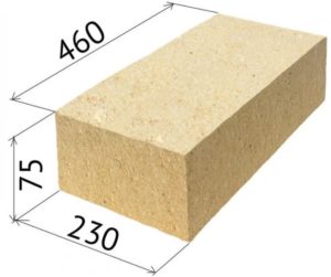 The product is used when laying domestic and industrial stoves, fuel chambers, fireplaces.It can withstand temperatures not lower than 1690 degrees and is able to protect the structure from direct exposure to fire. The model has good thermal conductivity, so the room heats up quickly. The refractory has a granular, rough structure of sandy, yellow or light brown color. Dimensions - 300x150x65, Weight - 6 kg. Emptiness - full-bodied.