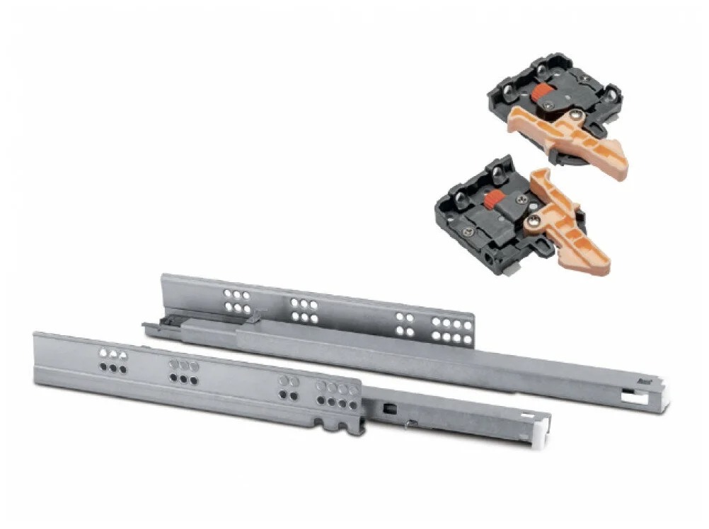The products of the Polish brand are widely used not only in Russia, the parts produced by the company are supplied to different countries, while the structure is actively developing, increasing the number of its regular customers. The range of the brand includes a wide variety of different fittings for kitchen furniture from simple components of handles, hinges, legs and other trifles, to complex mechanisms like the Modern slide PB-0SHX-600-A full extension rail with closer. The main distinguishing feature of this design is the hidden installation method, that is, it provides for the installation of the system not, as usual, on the sides of the box, but on its bottom.